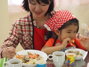 食べ物やお料理に興味を持つことから始まり、将来的には、「いつ」「どこで」「どんな風に」「何を」食べればよいのかを考えるように、考える必要があると感じてもらえるようになってもらうことで、豊かな食生活と健康を両立できるようになる手助けをすることが私たちの願いです。